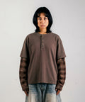 LOST PLAID LAYERED LONG SLEEVE – WASHED COCOA